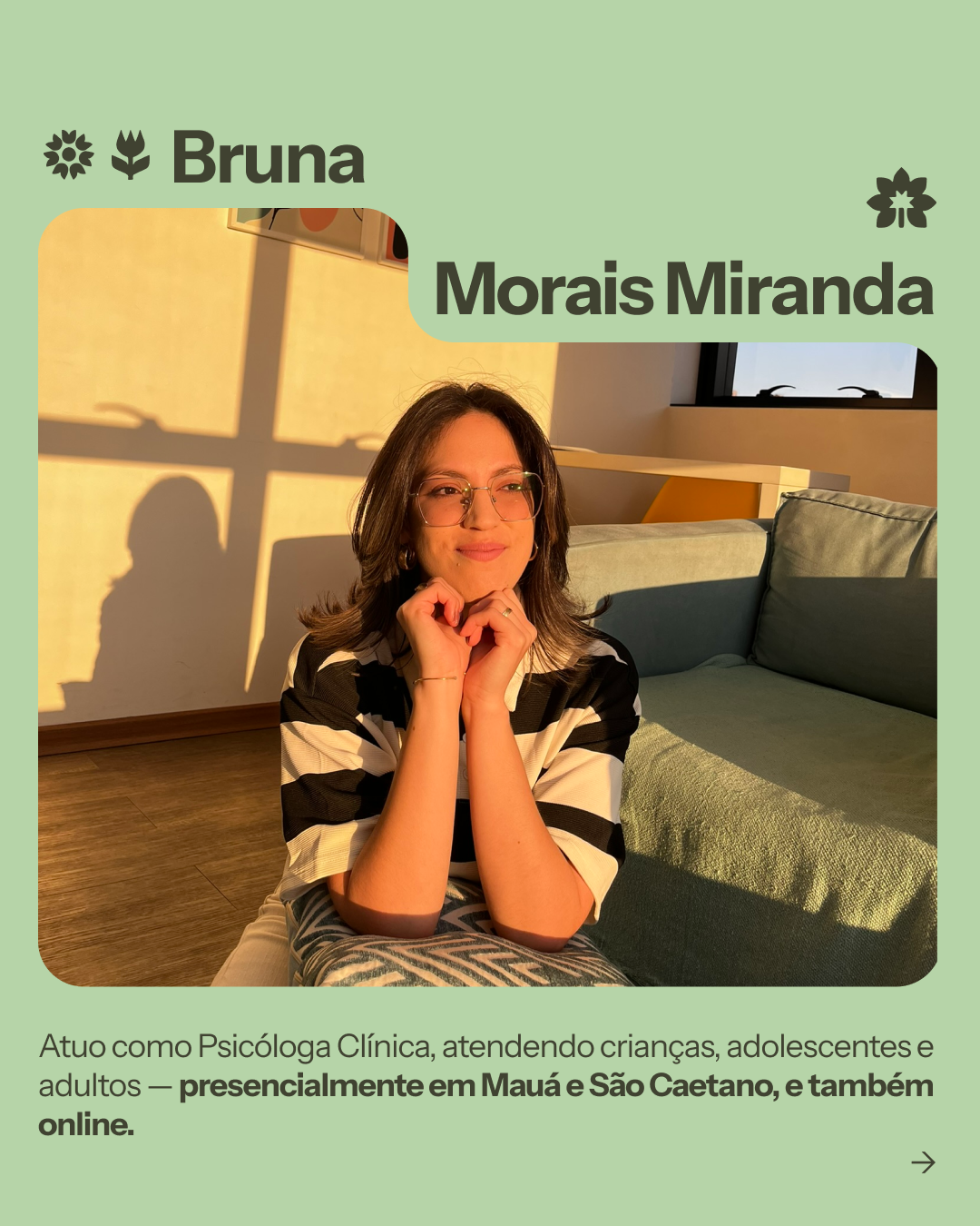 Sempre fui movida pelo interesse genuíno pelas pessoas — suas perguntas, silêncios e histórias. Na clínica, busco oferecer um espaço seguro e humano, onde cada pessoa possa se escutar, se reconhecer e construir novos caminhos no seu próprio tempo.